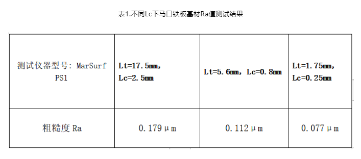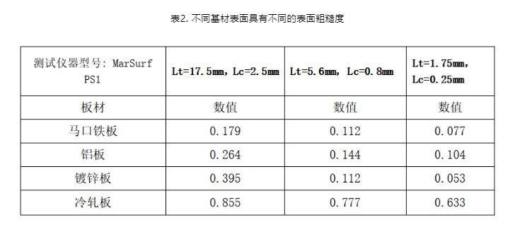 電泳底漆最終的粗糙度測(cè)試結(jié)果受到涂裝基材材質(zhì)和毛坯件自身粗糙度差異性、前處理類型和質(zhì)量、電泳漆質(zhì)量的綜合影響。以下就粗糙度儀的不同參數(shù)下對(duì)應(yīng)結(jié)果的差異性、不同基材的基材粗糙度Ra/電泳涂層粗糙度Ra。